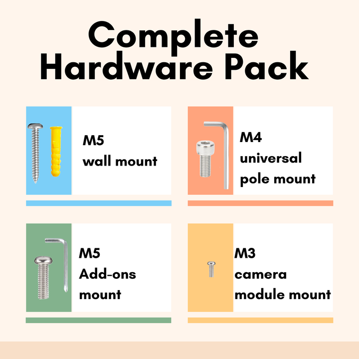 - All-in-One Complete Set: Never worry about a lost or damaged screw again. This comprehensive kit includes every screw needed for your bird feeder, including those for wall mount, universal pole mount, add-ons mount and camera mount.