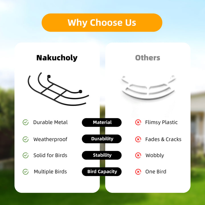 - All-Weather Metal Construction: Built to last from solid, high-grade metal with a sleek black powder-coated finish. This perch is completely weather-resistant, offering excellent protection against rust, rain, and sun. It's sturdy enough to support larger birds and withstand the antics of curious squirrels.