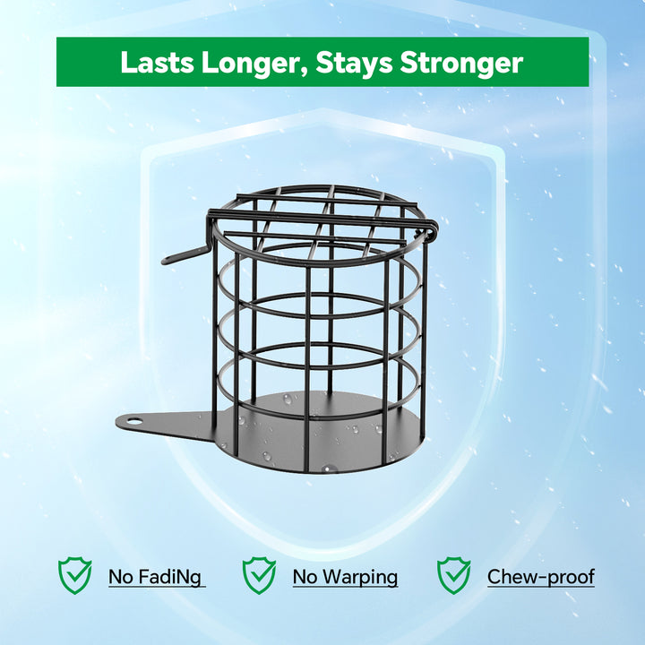 - Extended Tray Design – Built-in bottom tray prevents suet crumbs from falling and wasting. The extended design also channels grease and rainwater away from the feeder body, avoiding messy build-up and making cleaning easier.
