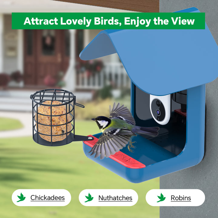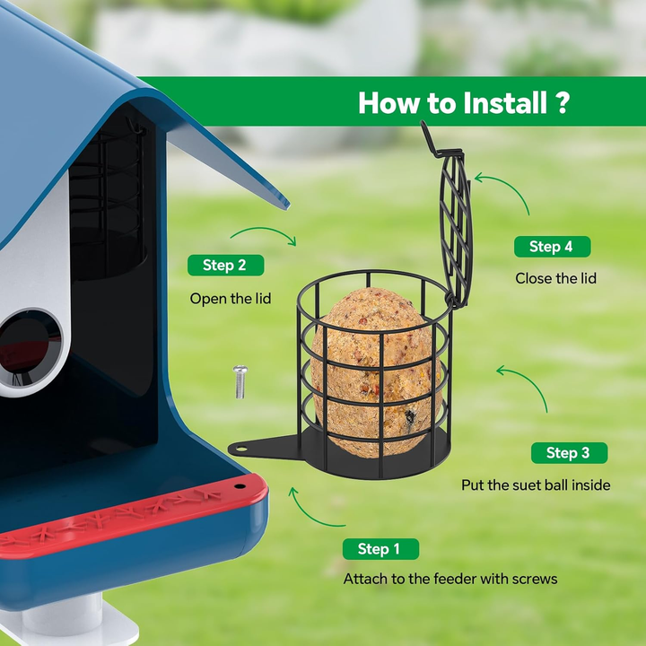 - Easy to Use – Simply fix the suet feeder onto your Bird Buddy with the included screws, open the lid, place a suet ball, and close. Product size: 7 × 7 × 7 cm, perfect for holding standard-size suet balls.